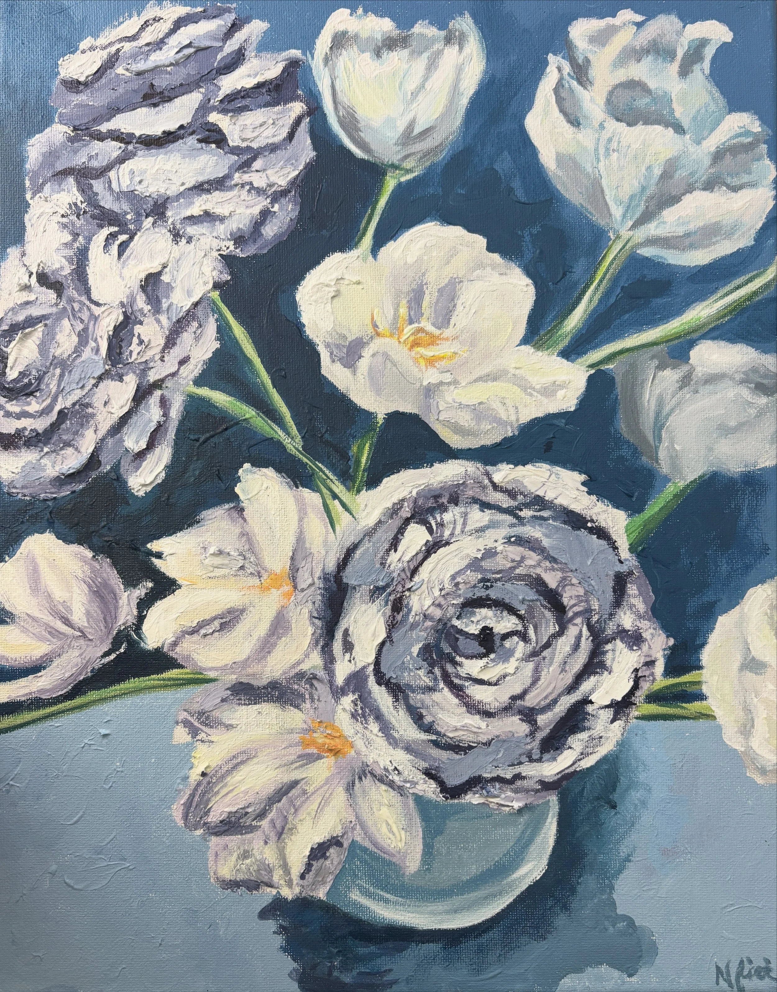 The flowers, though seemingly delicate, are rendered with strength and movement; representing resilience, transformation, and the unapologetic claiming of space.